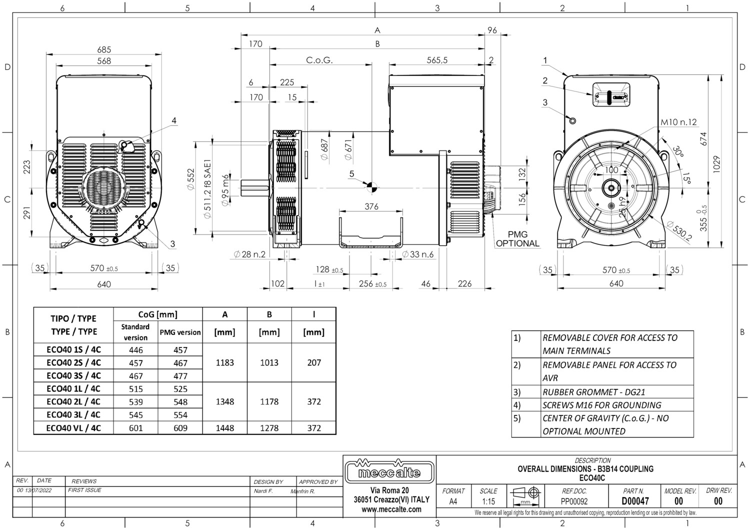 The entire series is manufactured according to, and complies with, the most common specifications such as CEI 2-3, IEC 34-1, EN 60034-1, VDE 0530, BS 4999-5000, CAN/ CSA-C22.2 No14-95- No100-95.